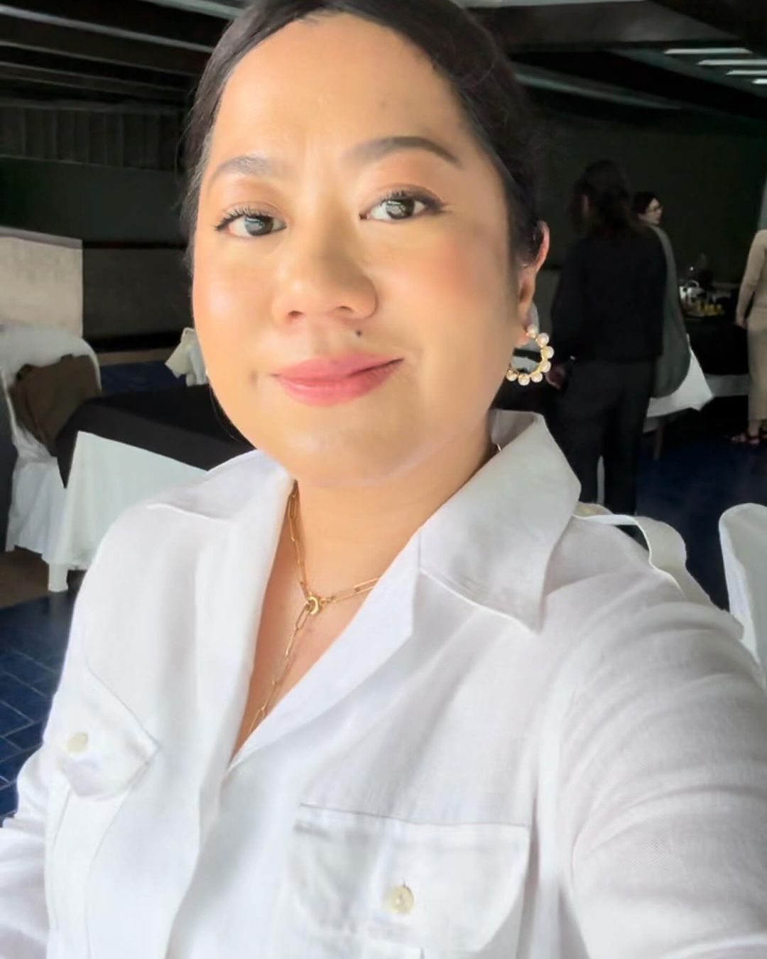 Classic hoops are made more playful with real freshwater pearls. This is such a great statement piece with your favorite linens and other billowy outfits.