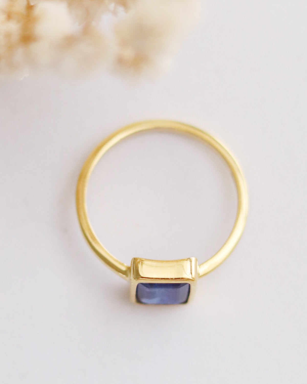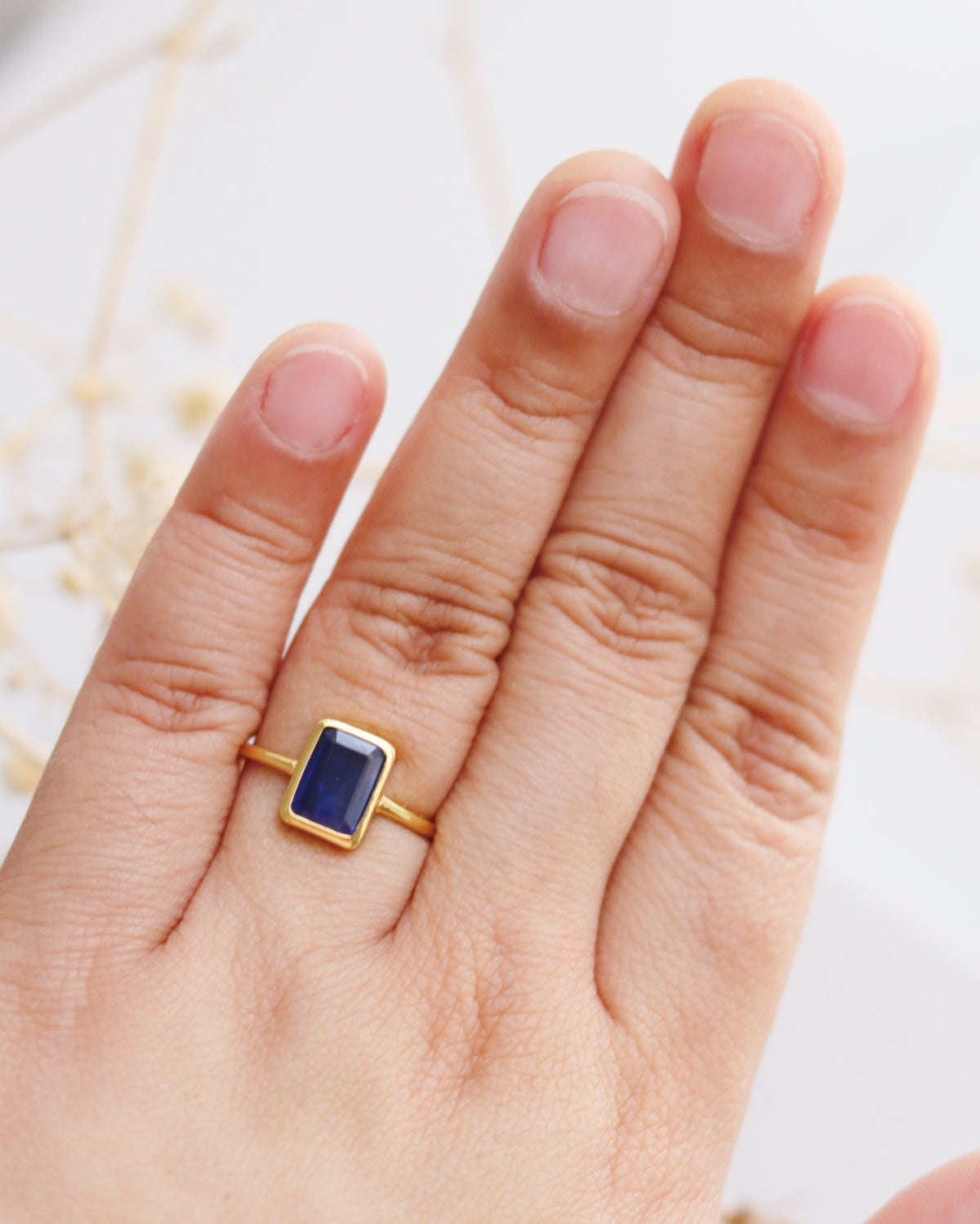 - 14k Gold Band: The warm gold band creates a striking contrast to the sapphire’s cool tones, offering a look that’s both bold and refined.